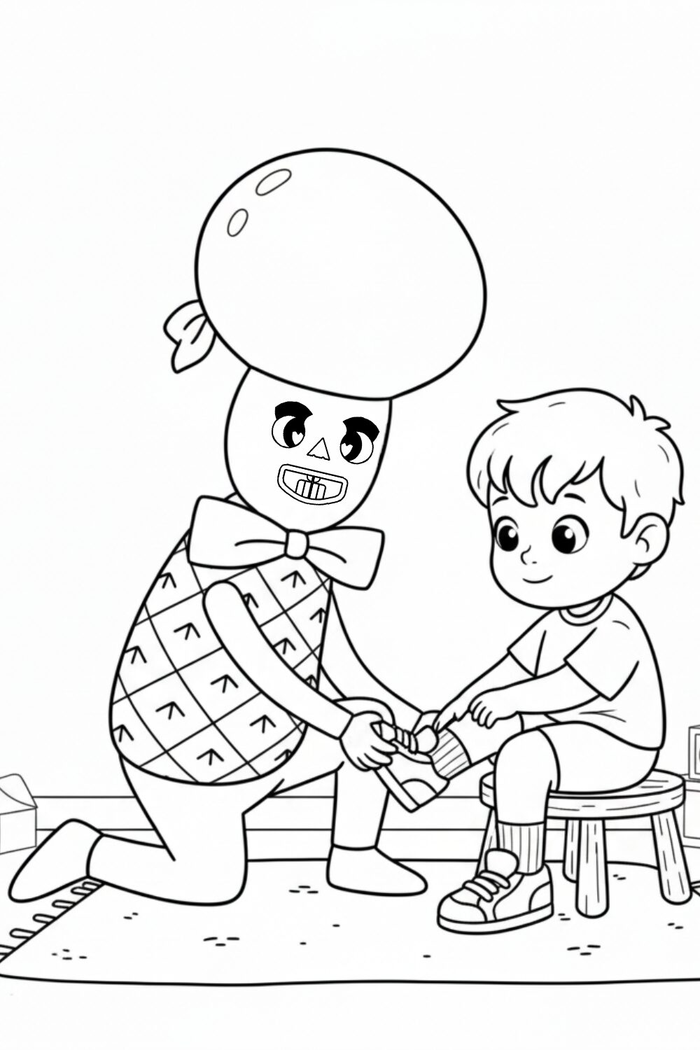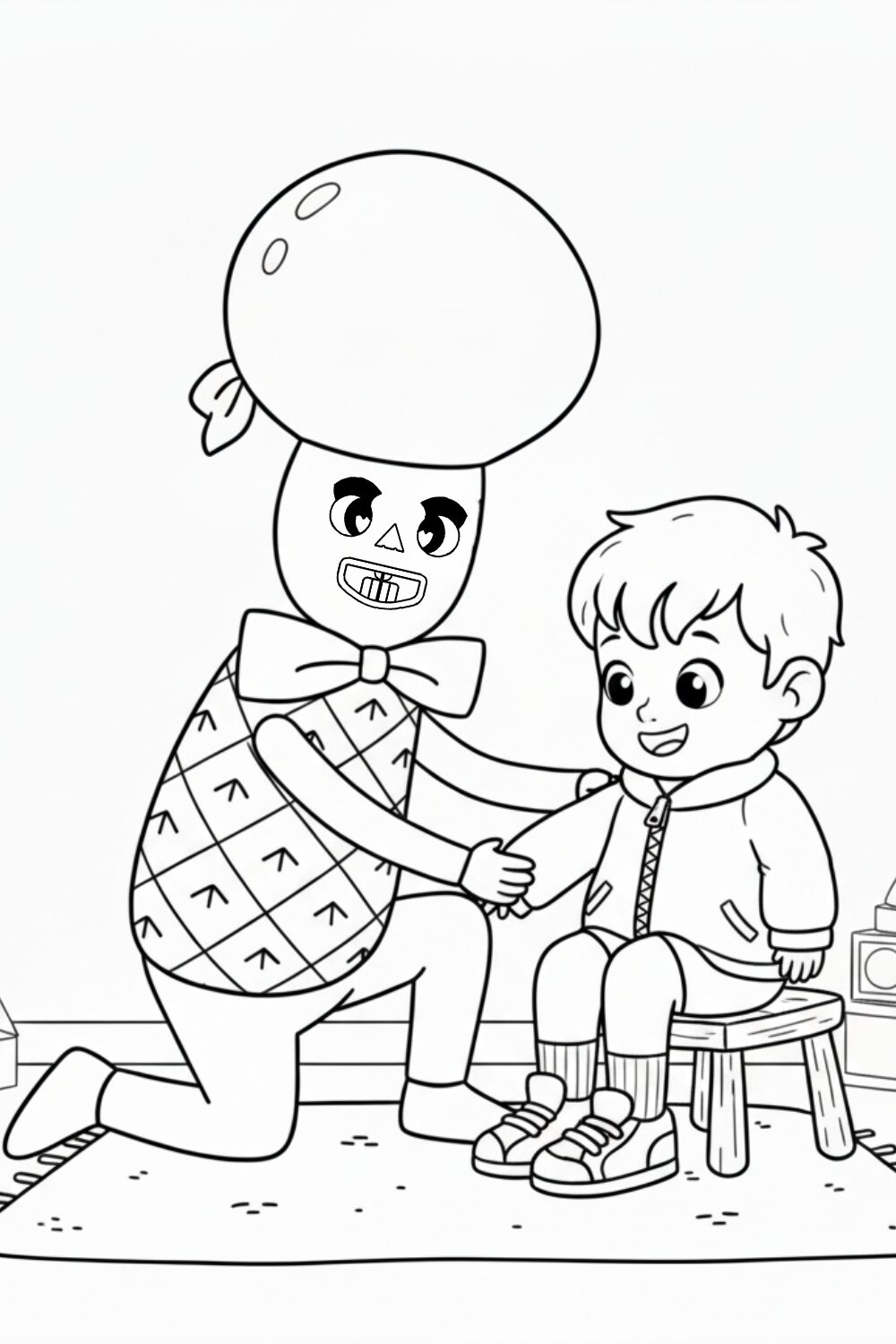 Friendly Myllo helps a little one put his shoes on, making tasks fun.