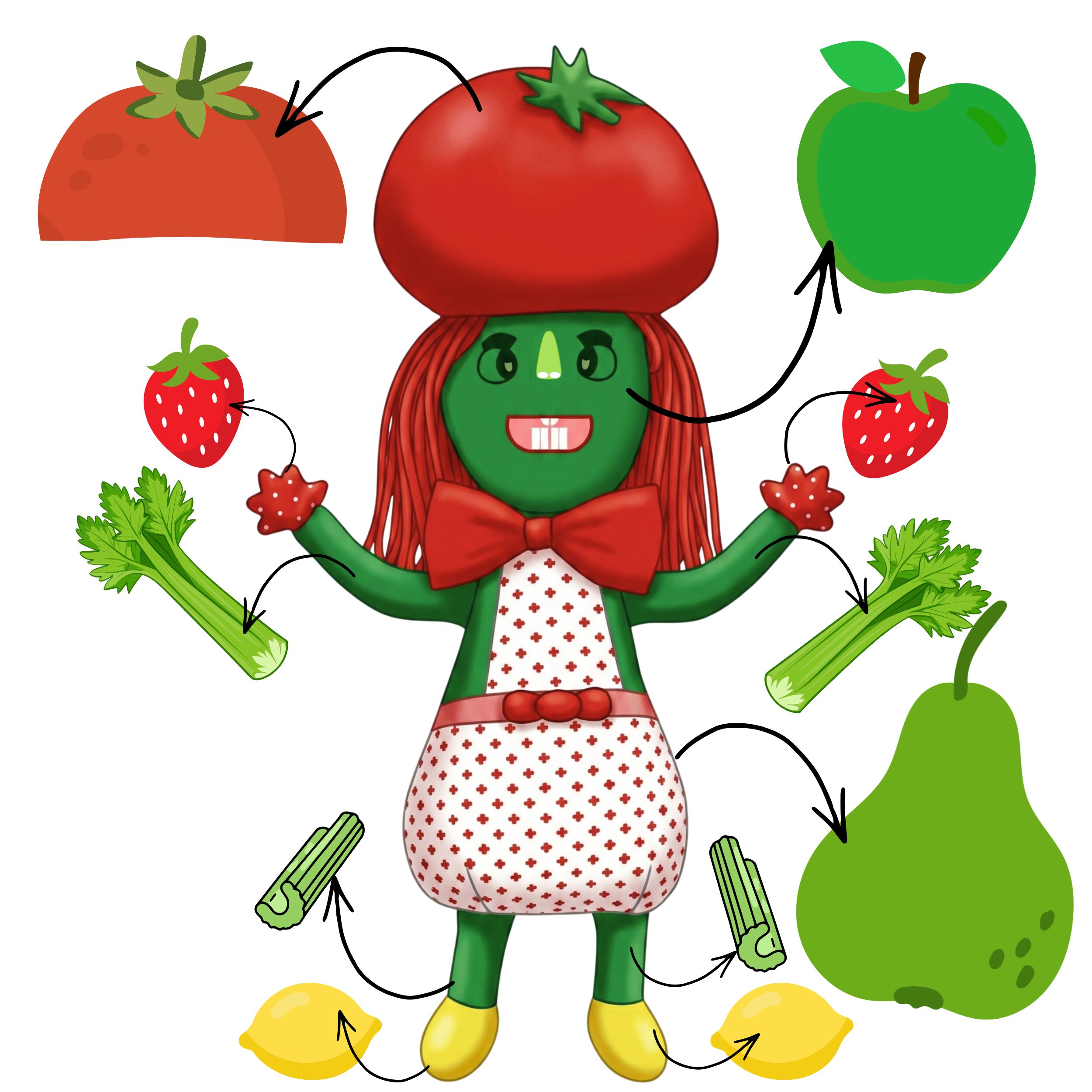 At our pop-up shops, we noticed children walking straight up to Meluna without being told. She is designed to be noticed. Inspired by crispy green apples, sweet pears, and colourful garden friends, she helps turn daily routines into healthy habits